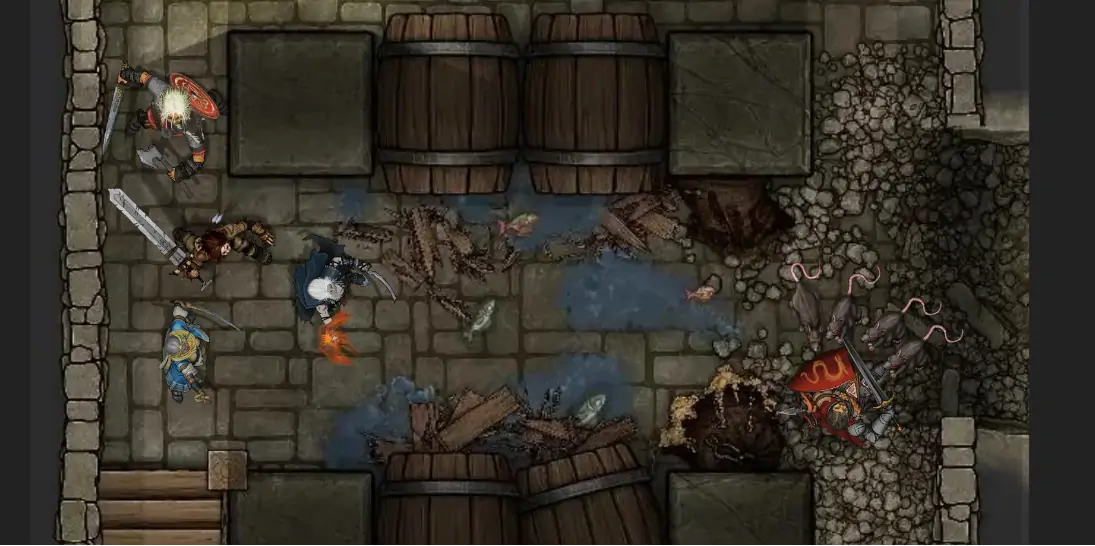 Immediatamente dopo, il gruppo viene assalito da uno sciame di topi più grandi di 90cm, che iniziano ad attaccare il gruppo, dove in particolare si accaniscono il paladino.